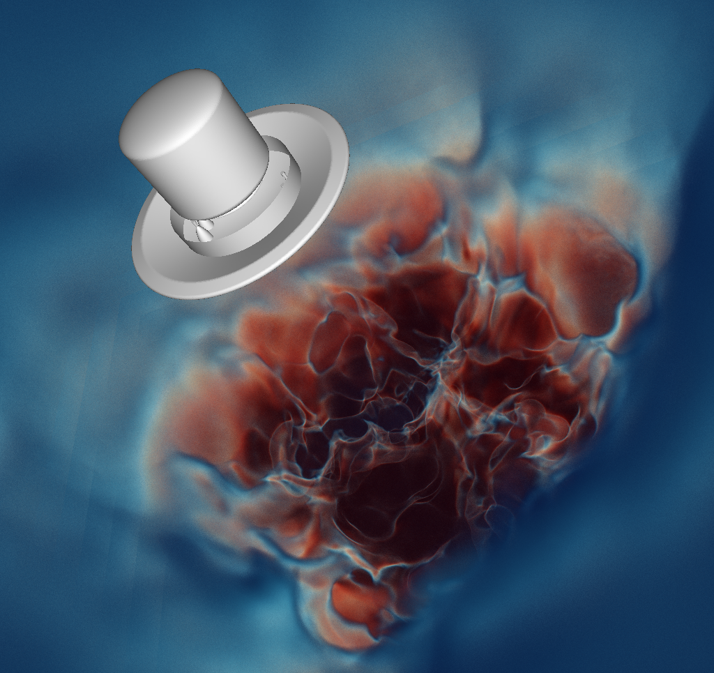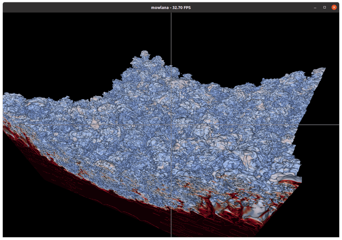 Eventually, looking at this data quickly turned from “oh, a new data set to play with” to what turned into a major effort where pretty much each and every one of the tools we had been using before had to be completely rewritten to better handle data of that size; and where we ended up having to go into a whole lot of totally orthogonal directions that each had their own non-trivial challenges: building tools for even interfacing with unstructured meshes of that scale (our umesh library), different approaches to render it (with sampling vs tet/cell marching, different space skipping methods, different (adaptive) sampling methods, etcpp), with lots and lots of new helper tools for stitching, for computing mesh connectivity, iso-surfaces, shells, tetrahedralizations, partitionings, ghost-cells/regions, etcpp; a new framework for data-parallel rendering that can deal with this sort of data (where, for example, individual partitions aren’t convex), and so on, and so on, and so on….
