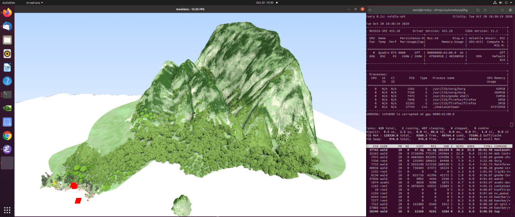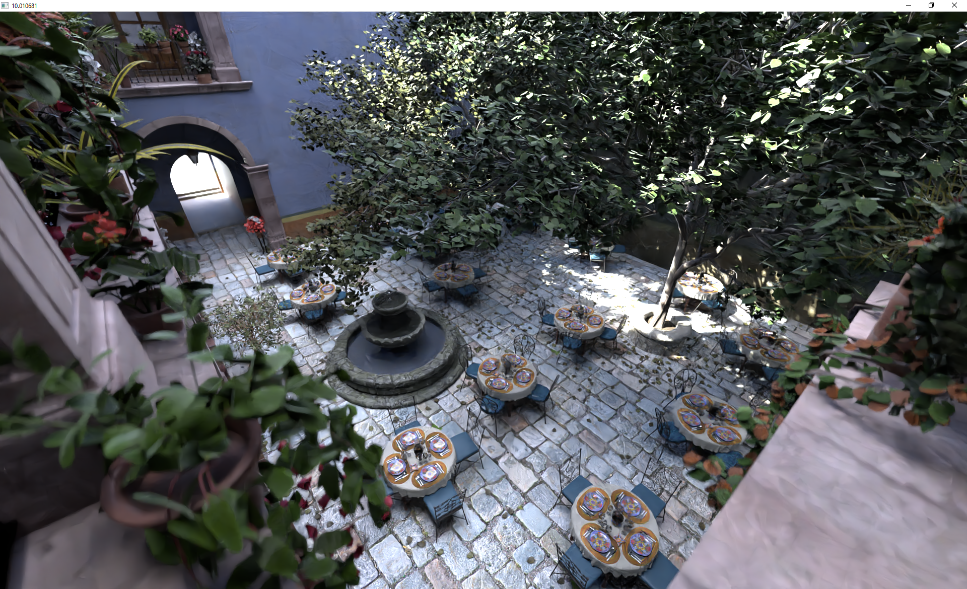 BTW: The above renders quite interactively; currently at something like 25-ish fps on a RTX 8000 (at 2560×1080), and using about 32 out of the 48GBs of RAM. I (obviously) use progressive refinement, so while you move around the image is somewhat more noisy – but by the time you can even click on the screenshot app you pretty much get the above. (I’ll release the code at some point in time, when I cleaned it up a bit).