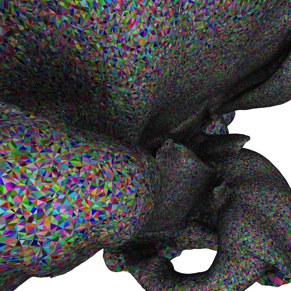 And finally, let’s take this same view, and render with a triangle ID shader to show individual triangles of this iso-surface: